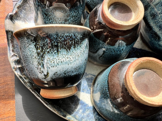 Dark Indigo Stormy Kyusu Tea Set (Signed)